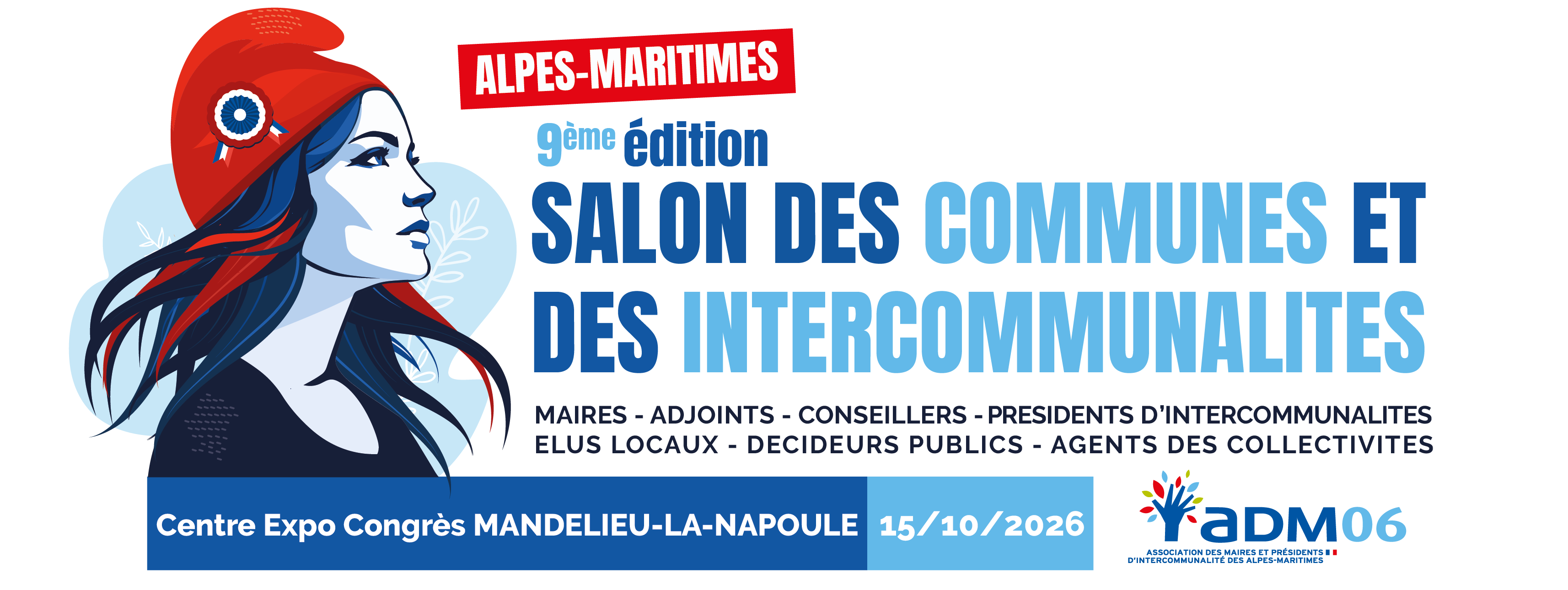 L’Association des Maires et des Présidents d’Intercommunalité des Alpes-Maritimes (ADM06) organise le Salon des Communes et des Intercommunalités des Alpes-Maritimes, le jeudi 15 octobre 2026, au Centre Expo Congrès de Mandelieu-la-Napoule.